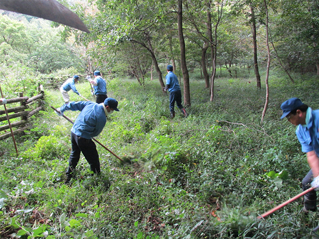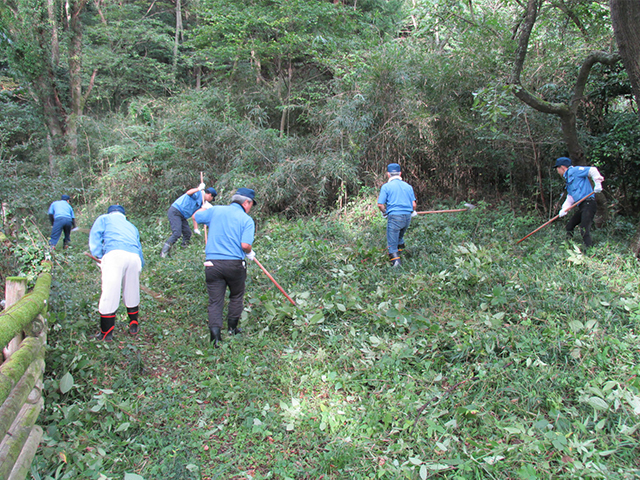 深谷市主催の鐘撞堂山ふるさとの森サポーター作業に参加し、草刈りやゴミ拾いを実施しています。